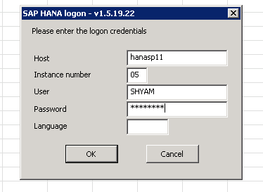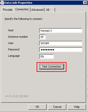 At the next tab – “Connection”, we would need to provide our SAP HANA system details along with the login credentials that would be used to access this view. Ideally, you would already know this. If not, please check with your system admin for these credentials. Click on “Test Connection” to check if MS Excel could successfully connect to your HANA system with these credentials.
