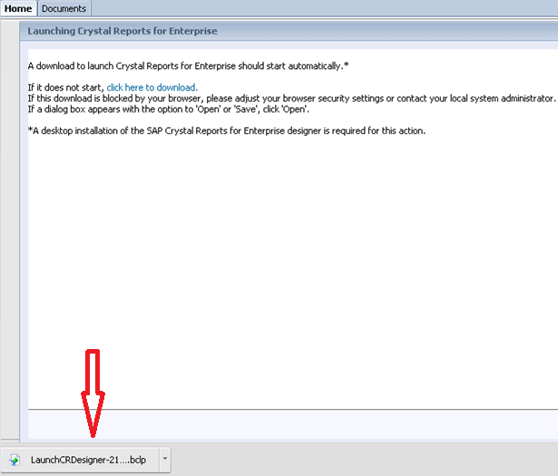 Crystal reports gets launched. If you don’t get this, check if you are getting a java error in which case, you would need to install the latest version of java on your PC.