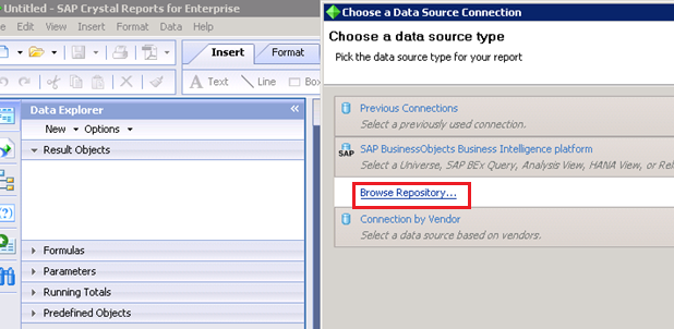 SAP Business Objects Crystal reports on SAP HANA – First Report