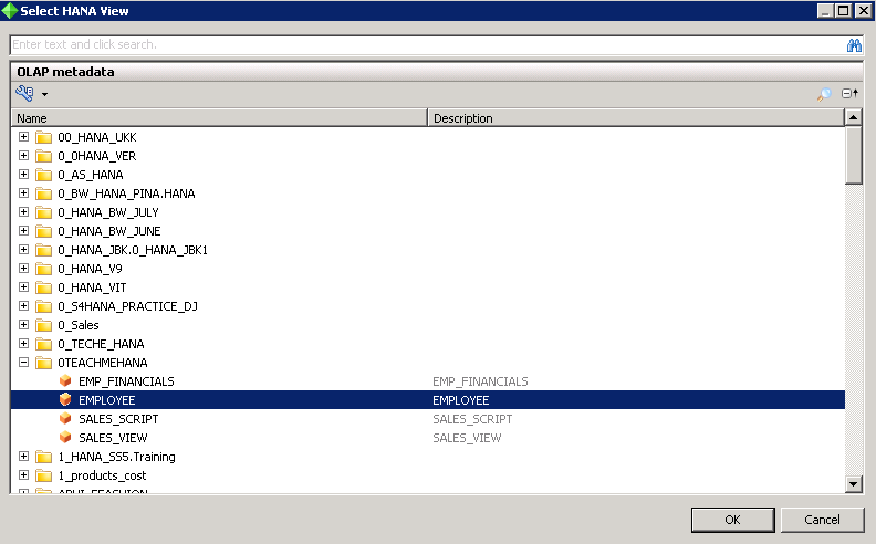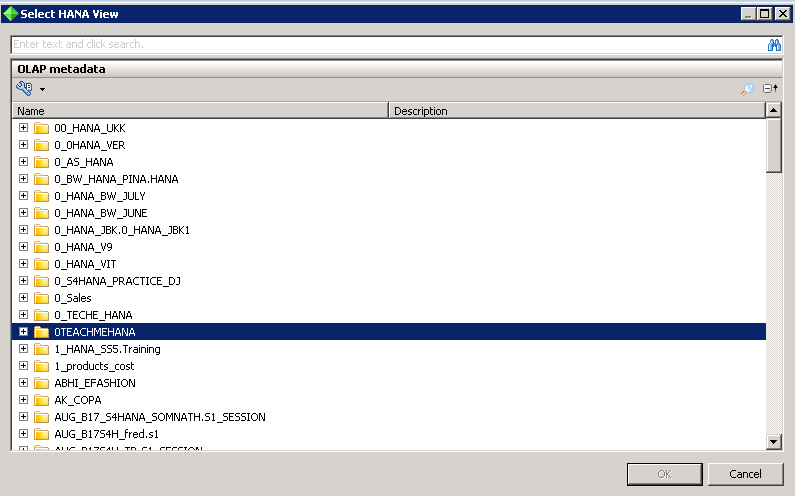 This opens up the list of your SAP HANA Packages as folders in the below dialog box.