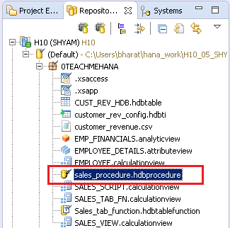 Line 3: Action is to run the sales_procedure stored procedure under the 0TEACHMEHANA package.