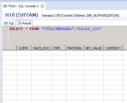 Let’s check the data currently in sales log table before we build our XS JOB by using a simple SELECT statement SELECT tutorial