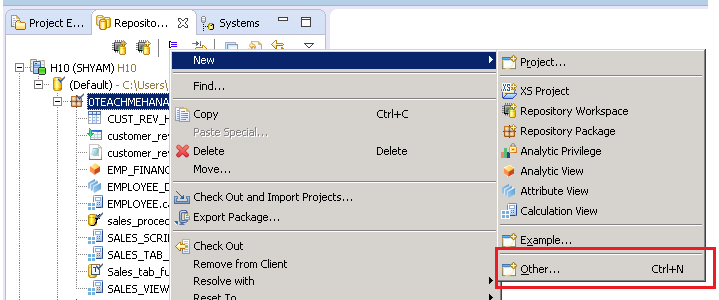 Now, we create the SAP HANA XSJOB. Right click on your package and navigate to New Other